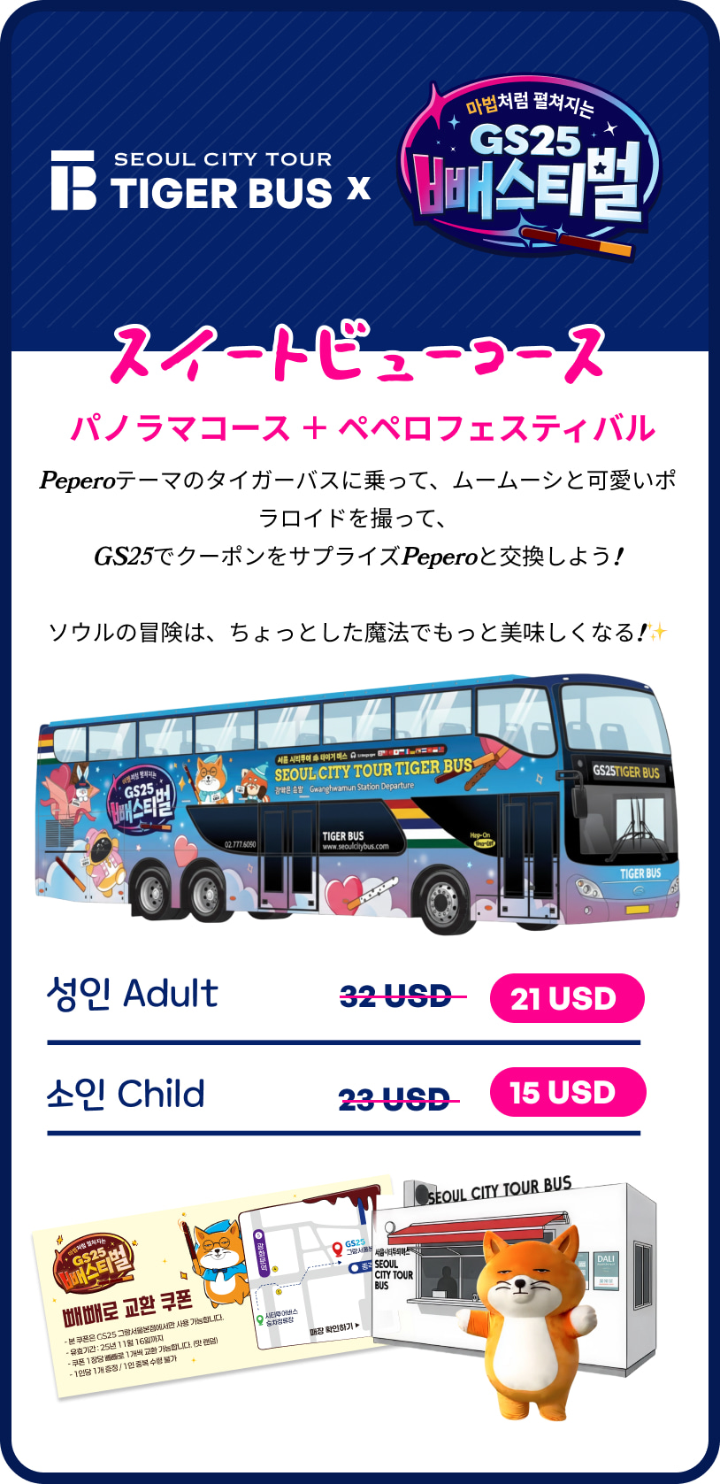 ソウルシティツアーバスのチケットによる様々な特典がご提供されます。